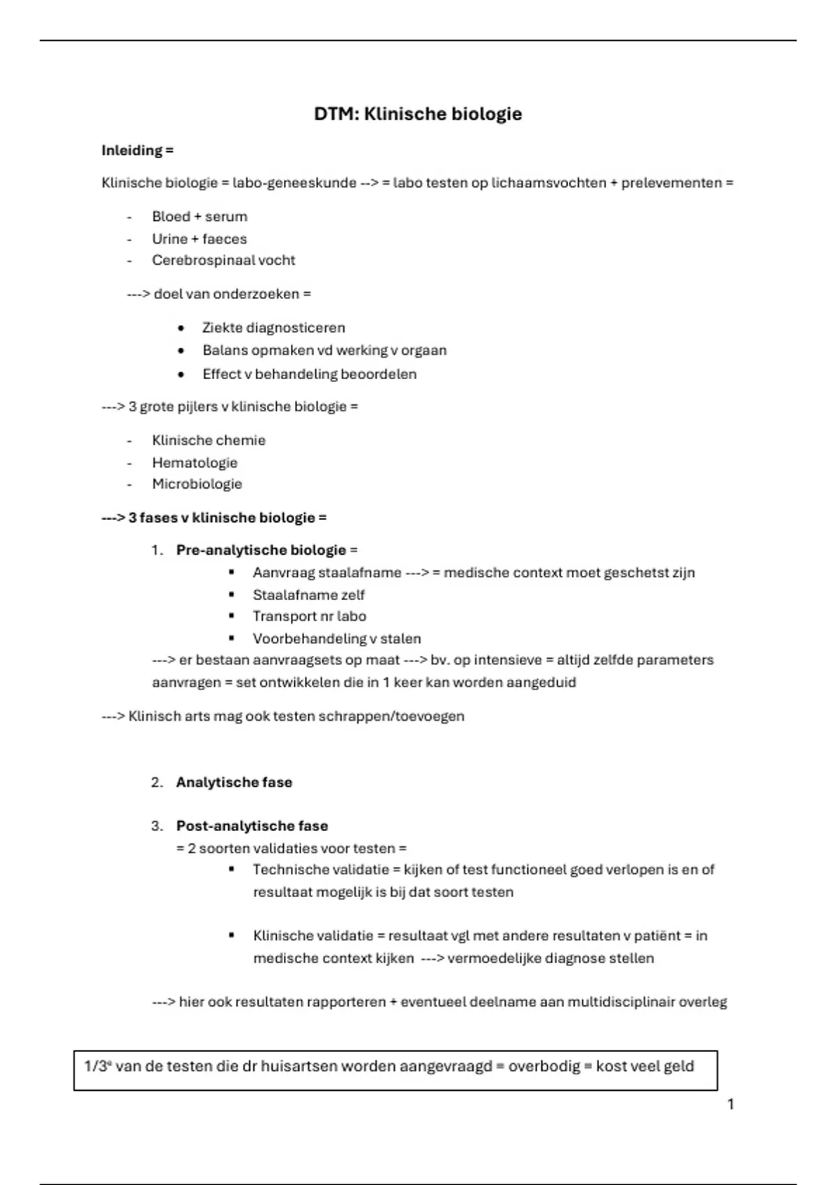 Klinische biologie = labo-geneeskunde --> = labo testen op lichaamsvochten + prelevementen =