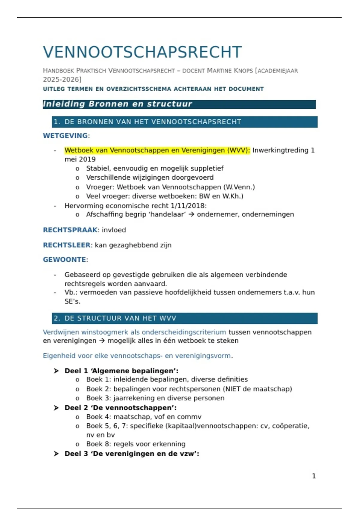 HANDBOEK PRAKTISCH VENNOOTSCHAPSRECHT – DOCENT MARTINE KNOPS [ACADEMIEJAAR