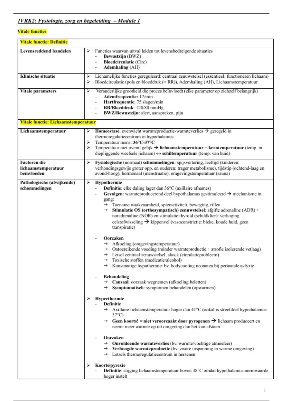 1VRK2: Fysiologie, zorg en begeleiding – Module 1