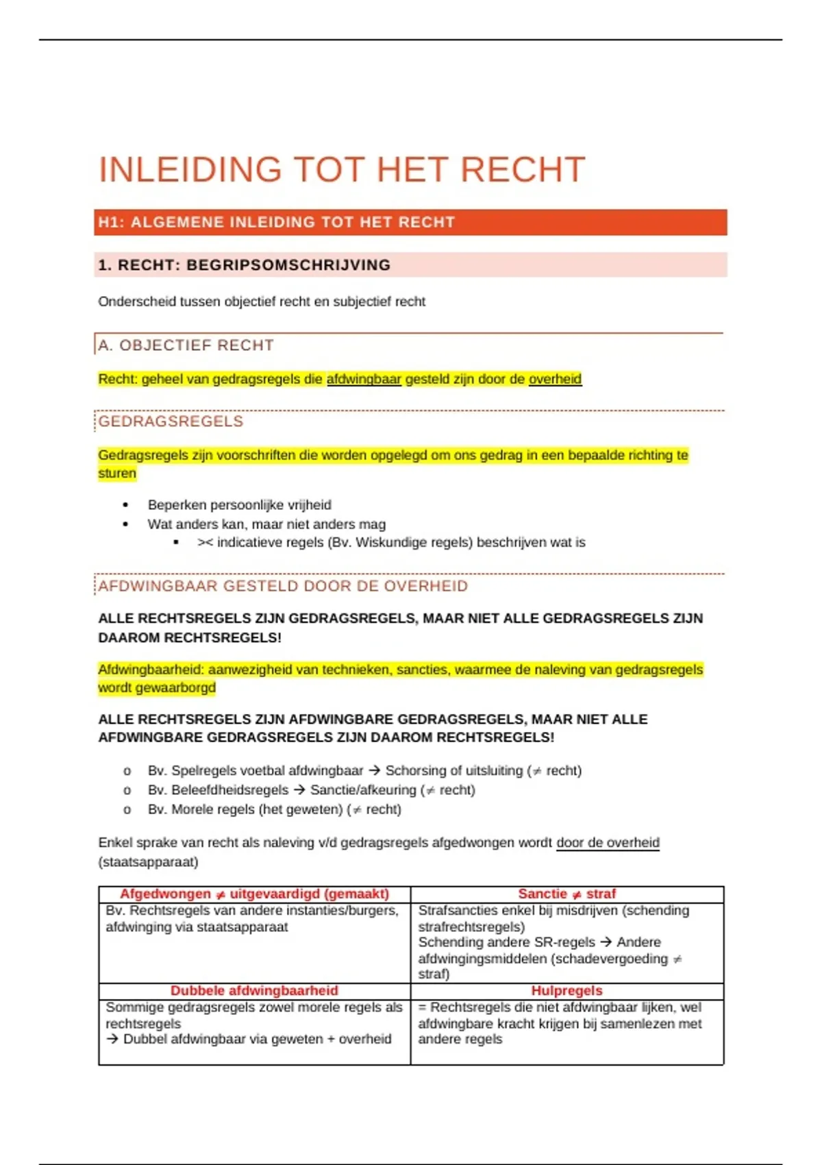 H1: ALGEMENE INLEIDING TOT HET RECHT