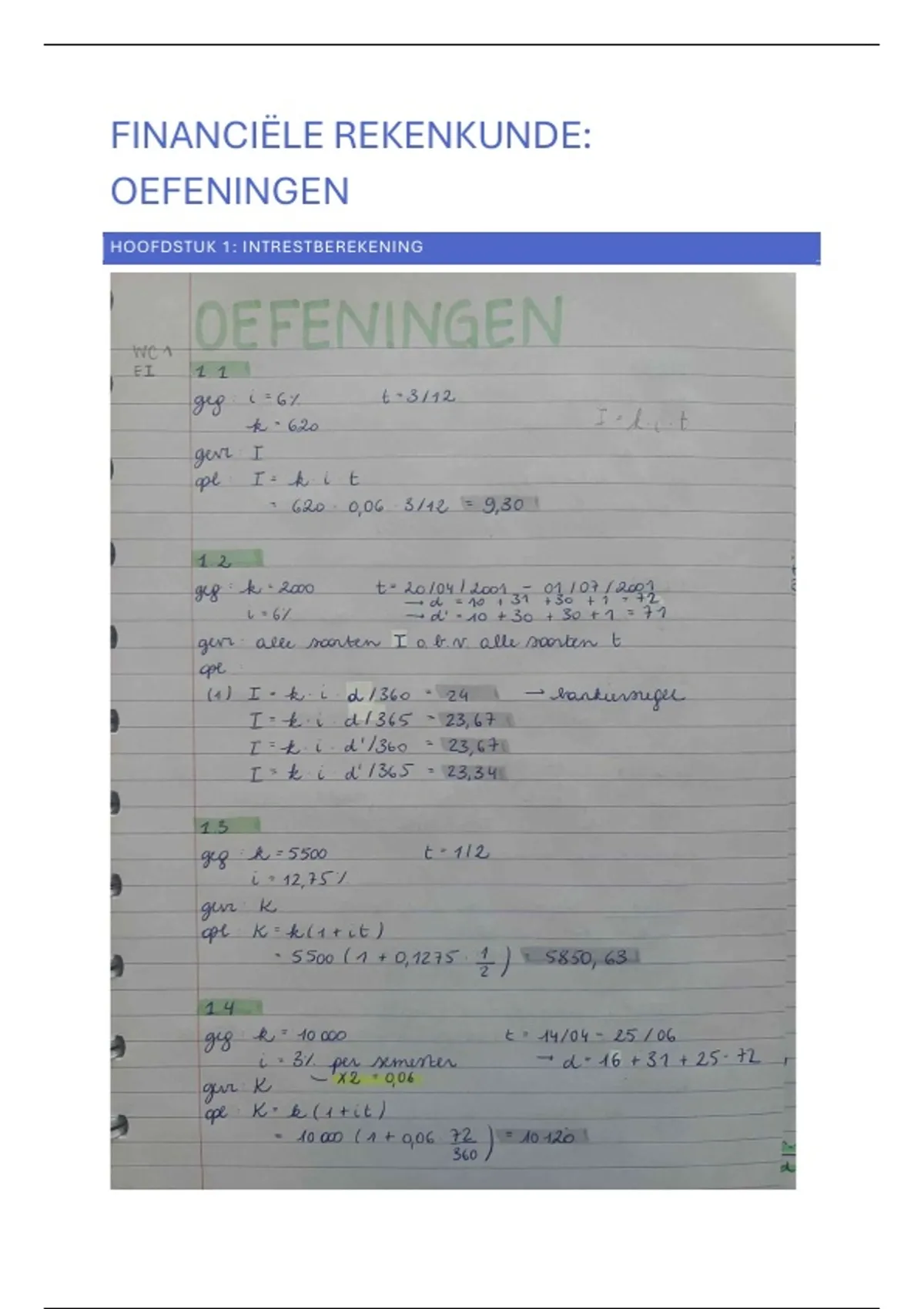 ALLE oefeningen Financiële Rekenkunde - UGent