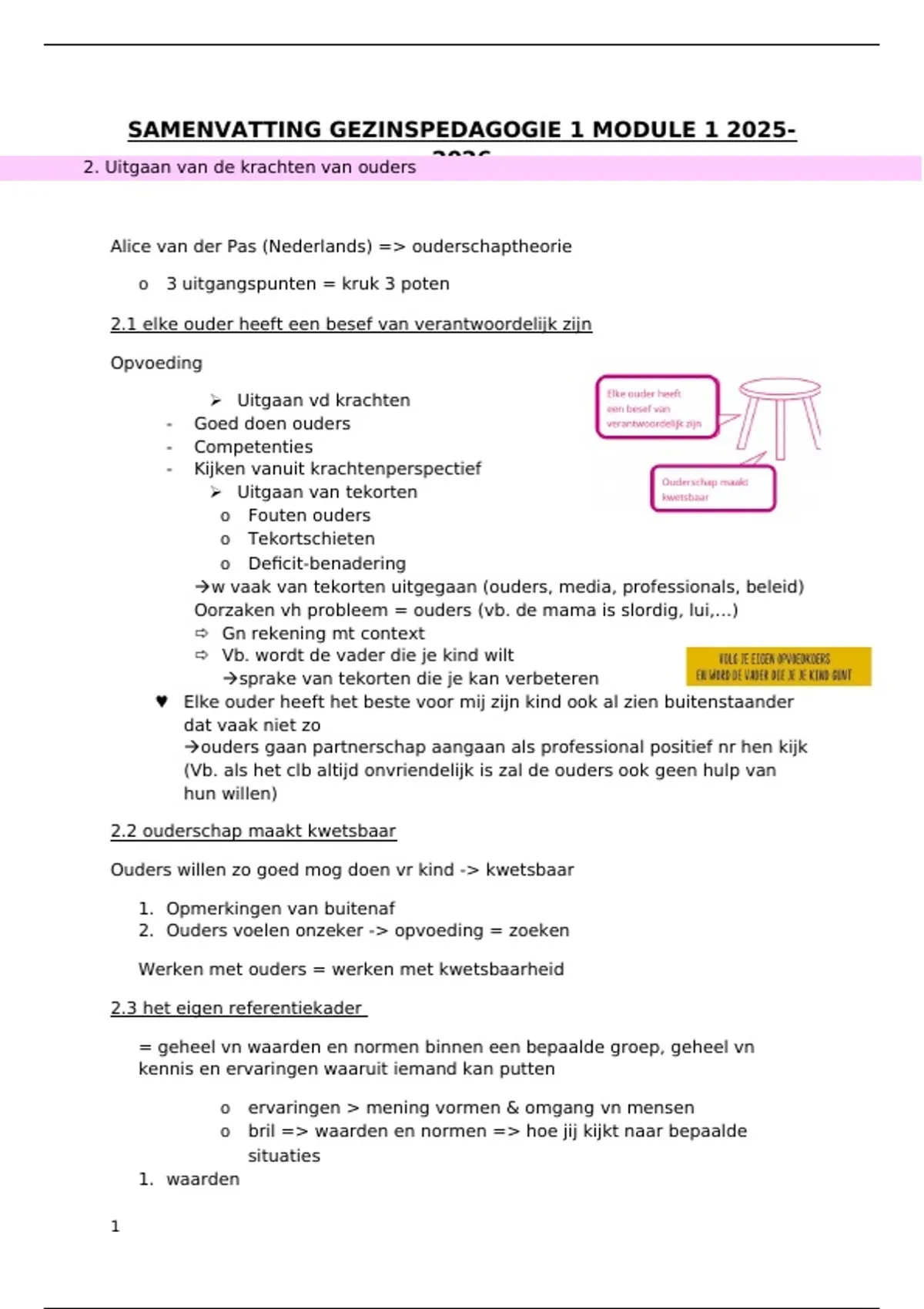 SAMENVATTING GEZINSPEDAGOGIE 1 MODULE 1 2025-