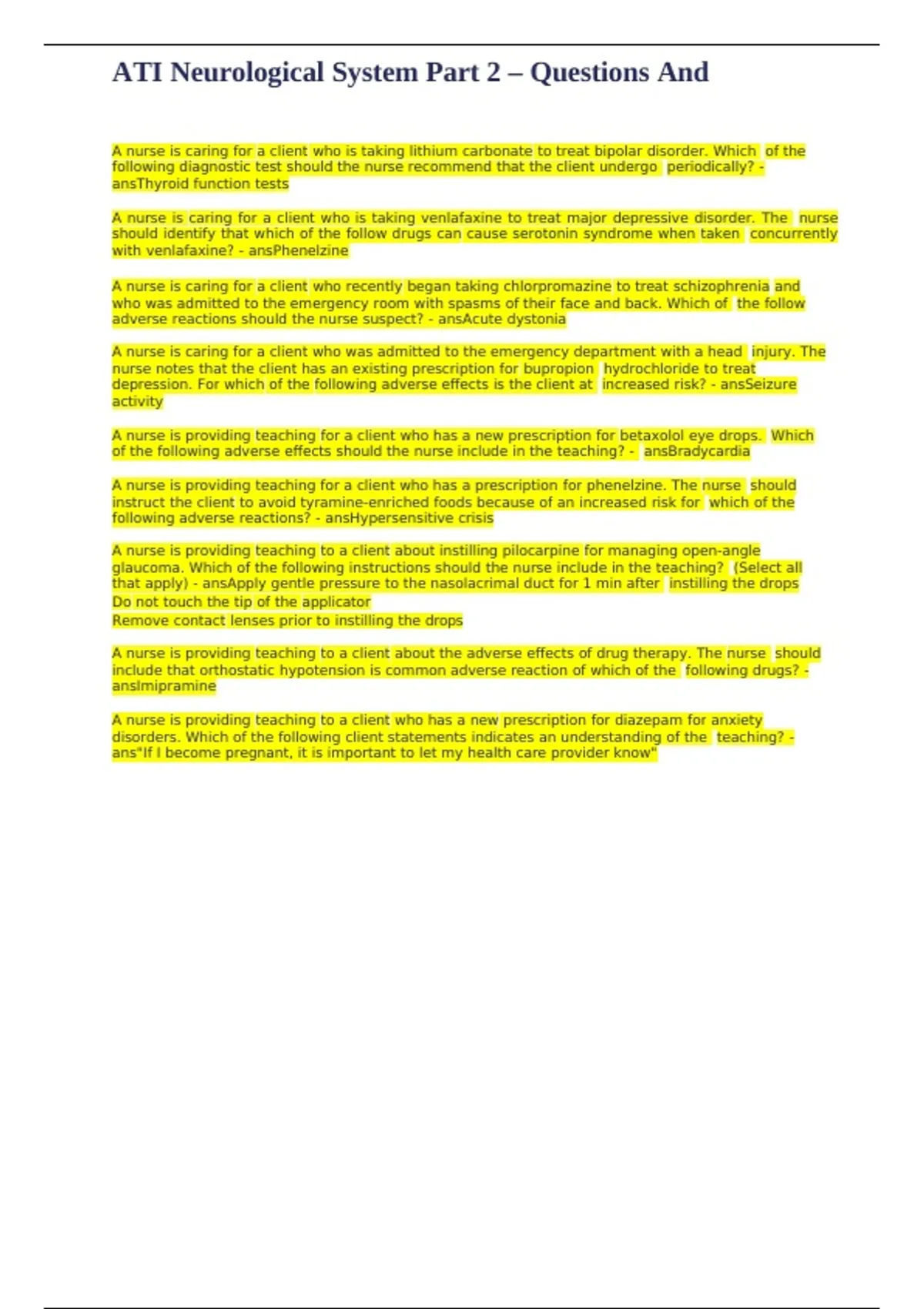 ATI Neurological System Part 2 – Questions And Answers (3).docx