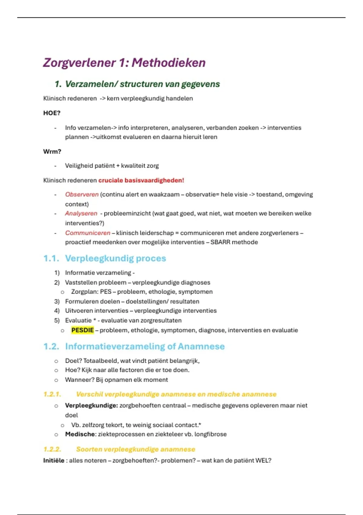 1.2.2. Soorten verpleegkundige anamnese