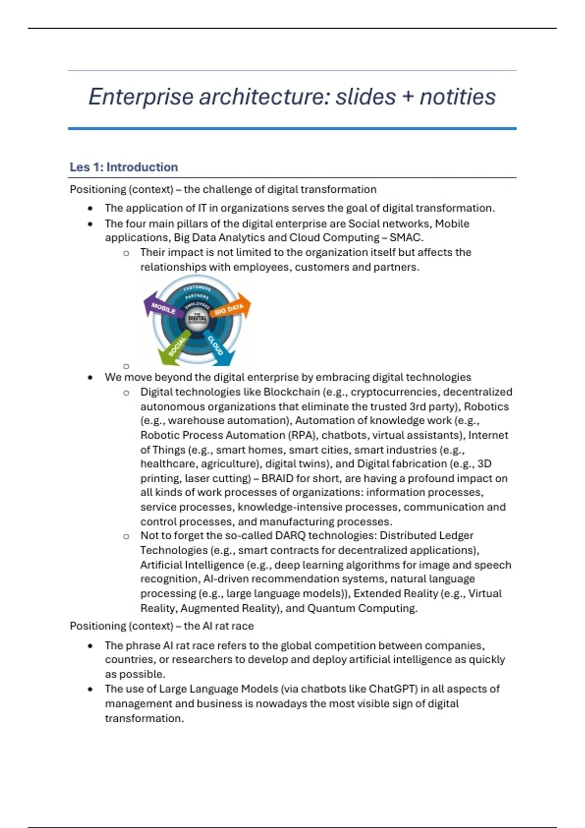 Alle slides + notities van in de les staan samengevoegd in dit document voor het vak enterprise architecture van 2de master handelsingenieur aan de UGent.