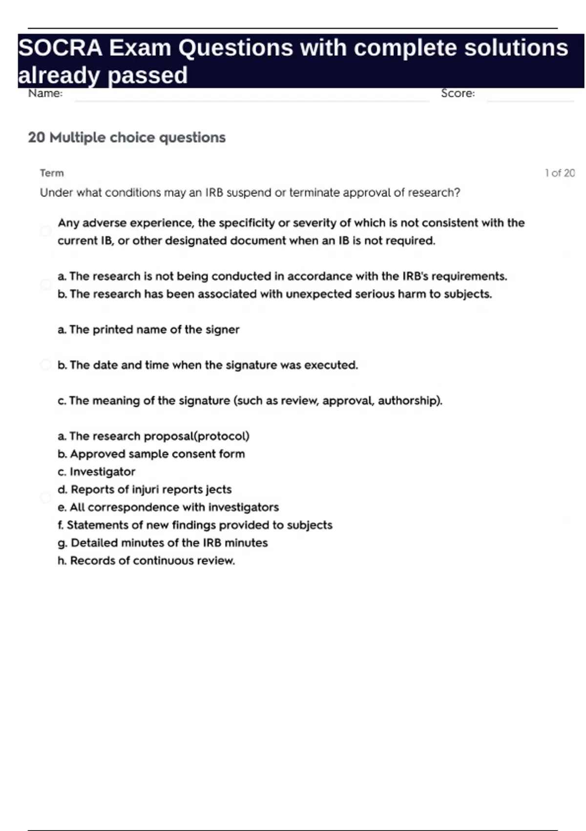 SOCRA Exam Questions with complete solutions already passed