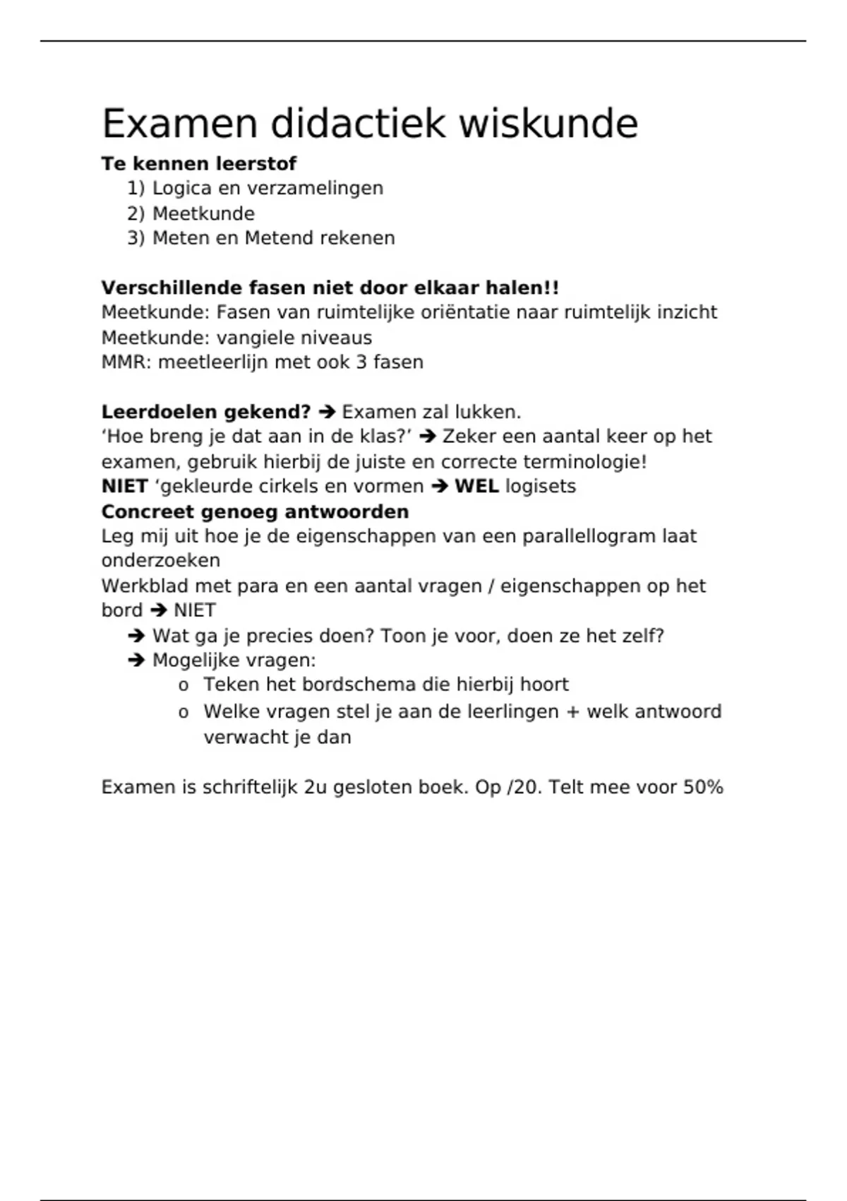 Examen is schriftelijk 2u gesloten boek. Op /20. Telt mee voor 50%