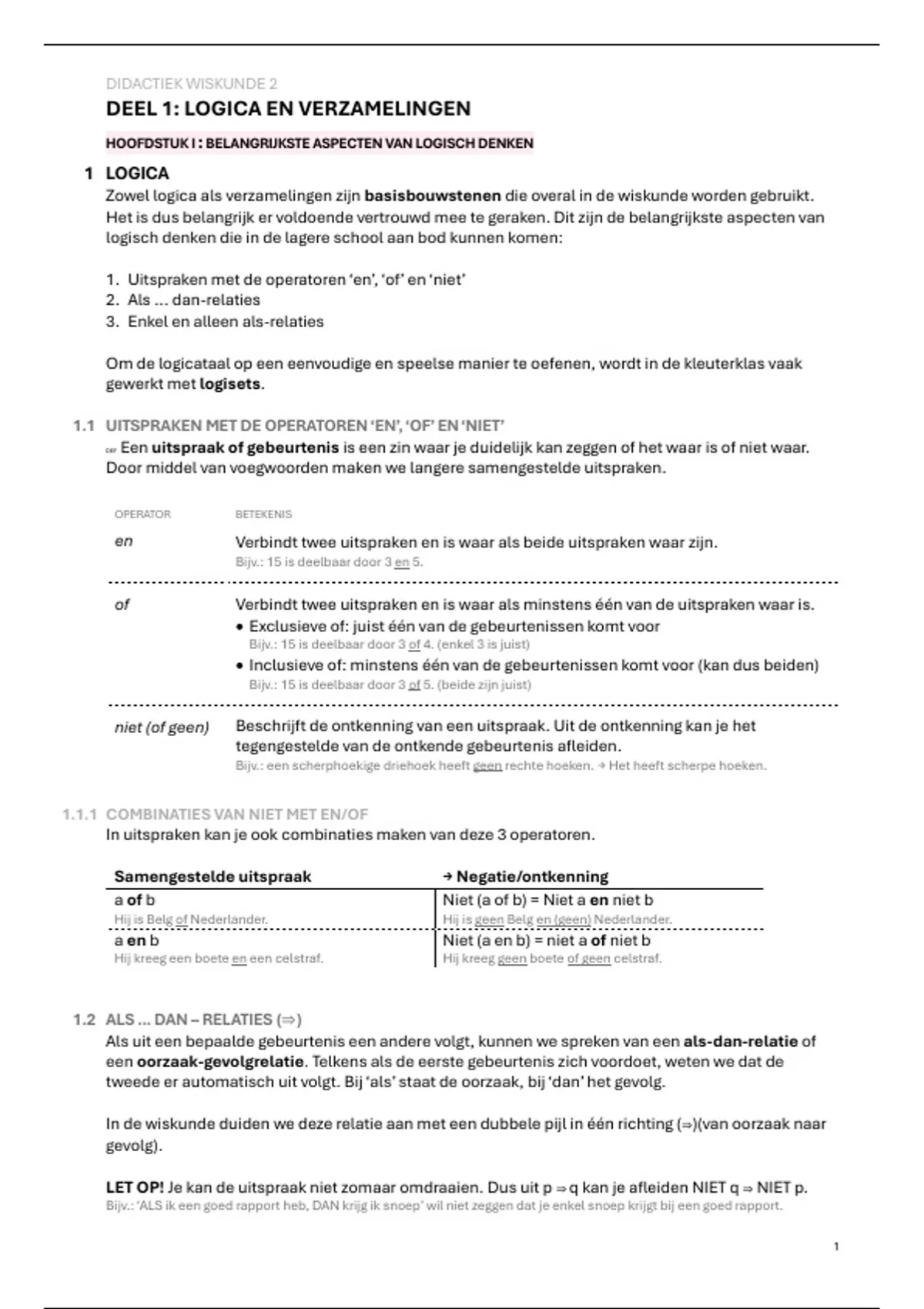 1. Uitspraken met de operatoren ‘en’, ‘of’ en ‘niet’