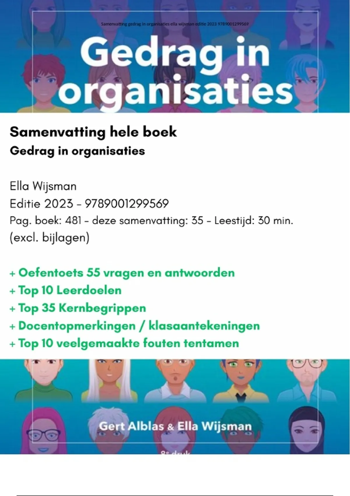 , Samenvatting gedrag in organisaties ella wijsman editie 2023 9789001299569