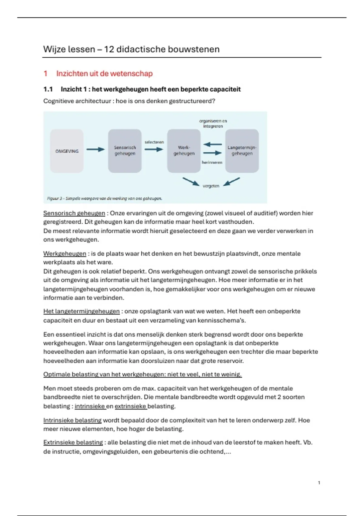 • Het is belangrijk dat we bij het lesgeven de capaciteit van het werkgeheugen van de