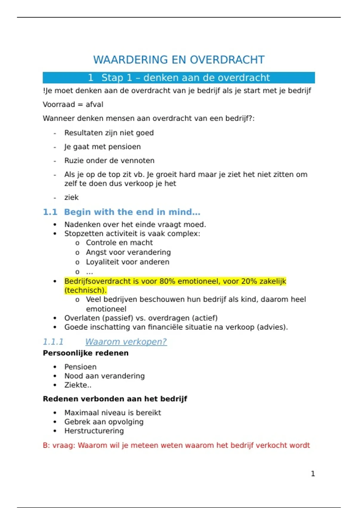 Samenvatting - Waardering en overdracht van bedrijven