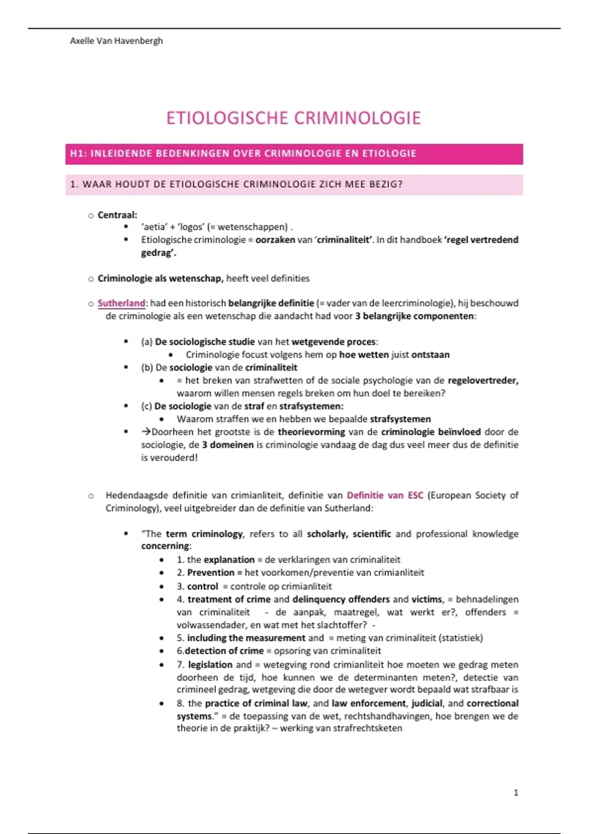 H1: INLEIDENDE BEDENKINGEN OVER CRIMINOLOGIE EN ETIOLOGIE