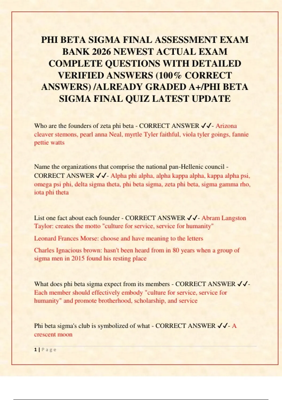 PHI BETA SIGMA FINAL ASSESSMENT EXAM BANK 2026 NEWEST ACTUAL EXAM COMPLETE QUESTIONS WITH DETAILED VERIFIED ANSWERS (100% CORRECT ANSWERS) /ALREADY GRADED A+/PHI BETA SIGMA FINAL QUIZ LATEST UPDATE