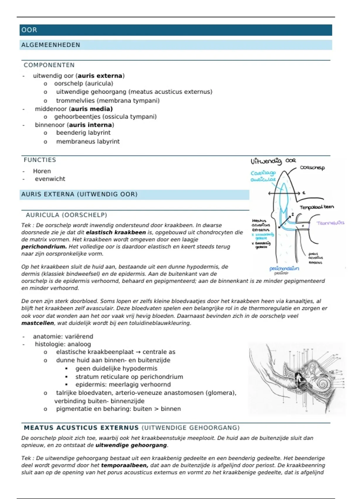 Tek : De uitwendige gehoorgang bestaat uit een kraakbenig gedeelte en een beenderig gedeelte. Het beenderige