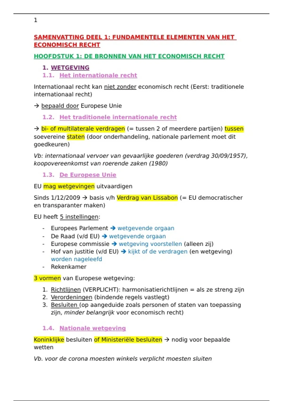 HOOFDSTUK 1: DE BRONNEN VAN HET ECONOMISCH RECHT