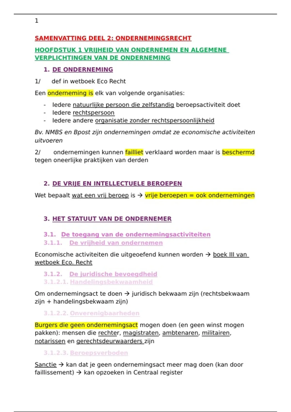 SAMENVATTING DEEL 2: ONDERNEMINGSRECHT