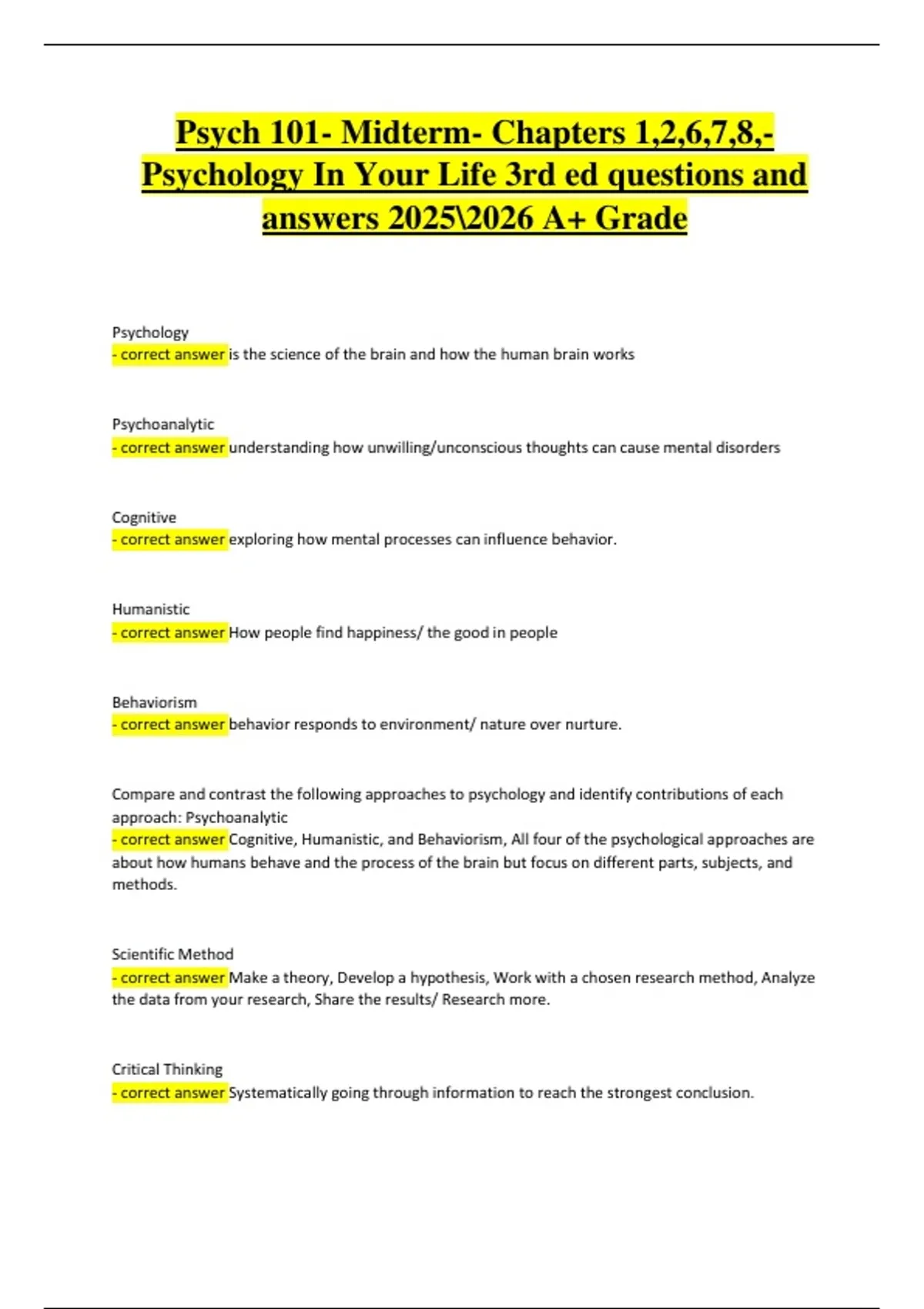 - correct answer Cognitive, Humanistic, and Behaviorism, All four of the psychological approaches are