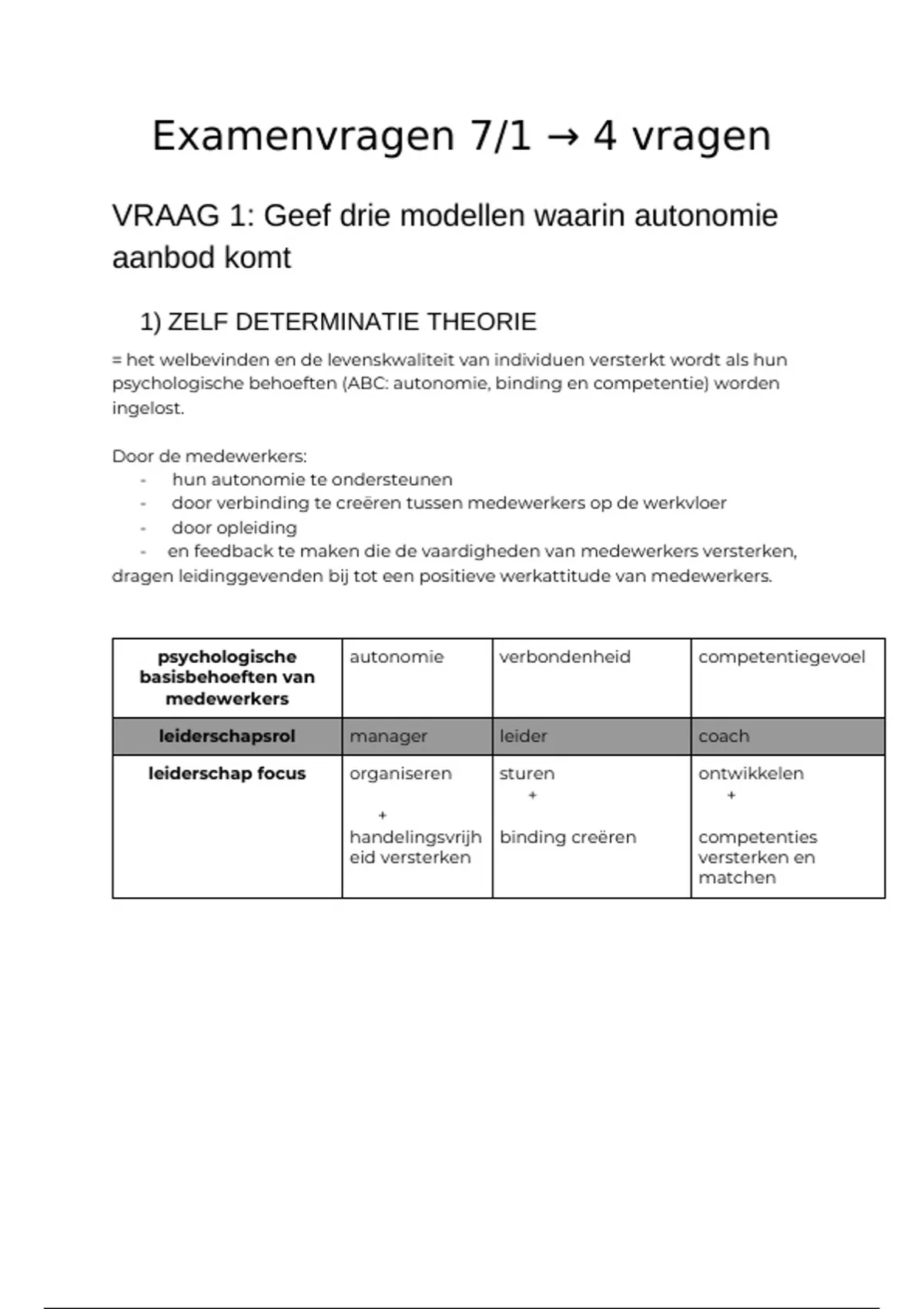 In bijlage vind je de examenvragen terug van het examen people and team management gegeven door Dimitri Van Maele. Ik schreef deze vragen op na mijn examen op 7/1/2025, samen met de 'juiste' antwoorden. Dit weet ik natuurlijk niet met zekerheid maar ik behaalde voor dit vak een 17/20. Ik doe dagonderwijs, maar door overlap heb ik dit vak opgenomen in afstandsonderwijs. Zie mijn andere documenten voor andere examenvragen zonder antwoorden en de samenvatting.