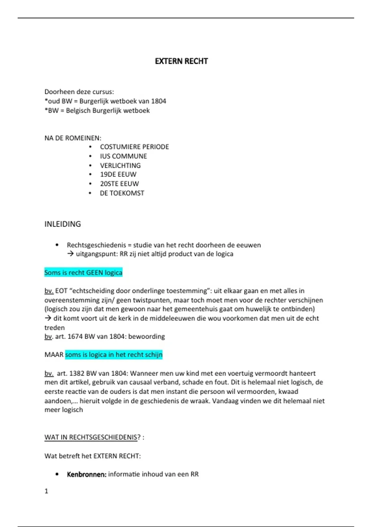 Europese en Belgische privaatrechtsgeschiedenis - Samenvatting van alle colleges zowel over intern als externe recht