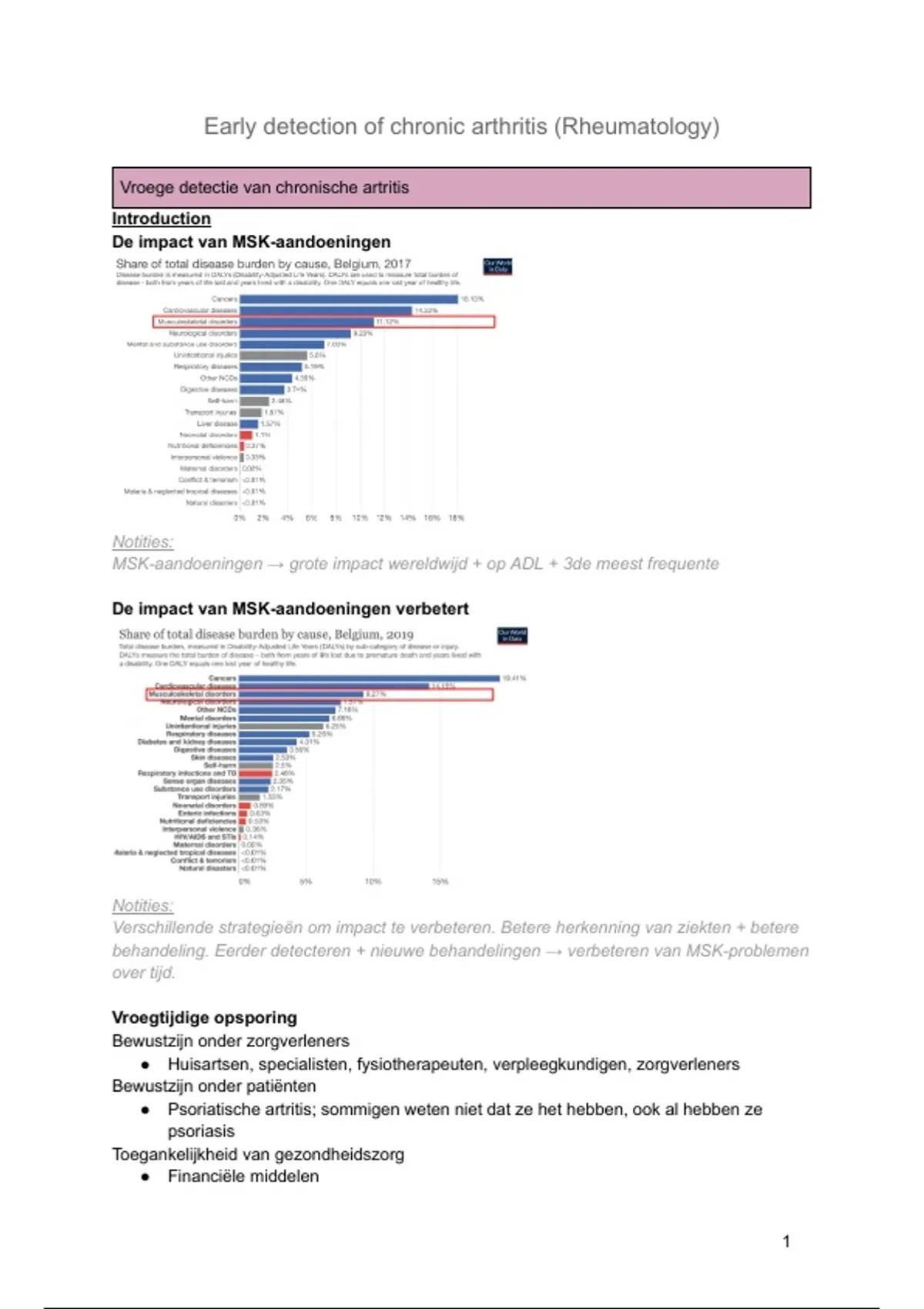behandeling. Eerder detecteren + nieuwe behandelingen → verbeteren van MSK-problemen