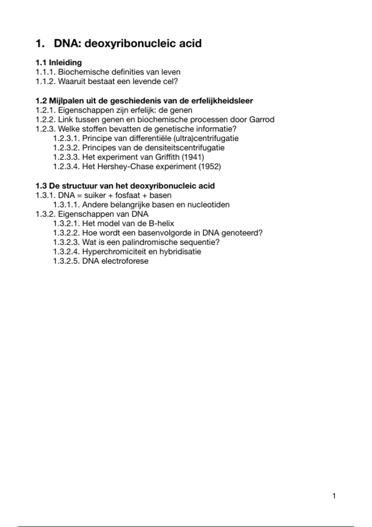 samenvatting hoofdstuk 1 cursus moleculaire biologie (prof F. Claessens)