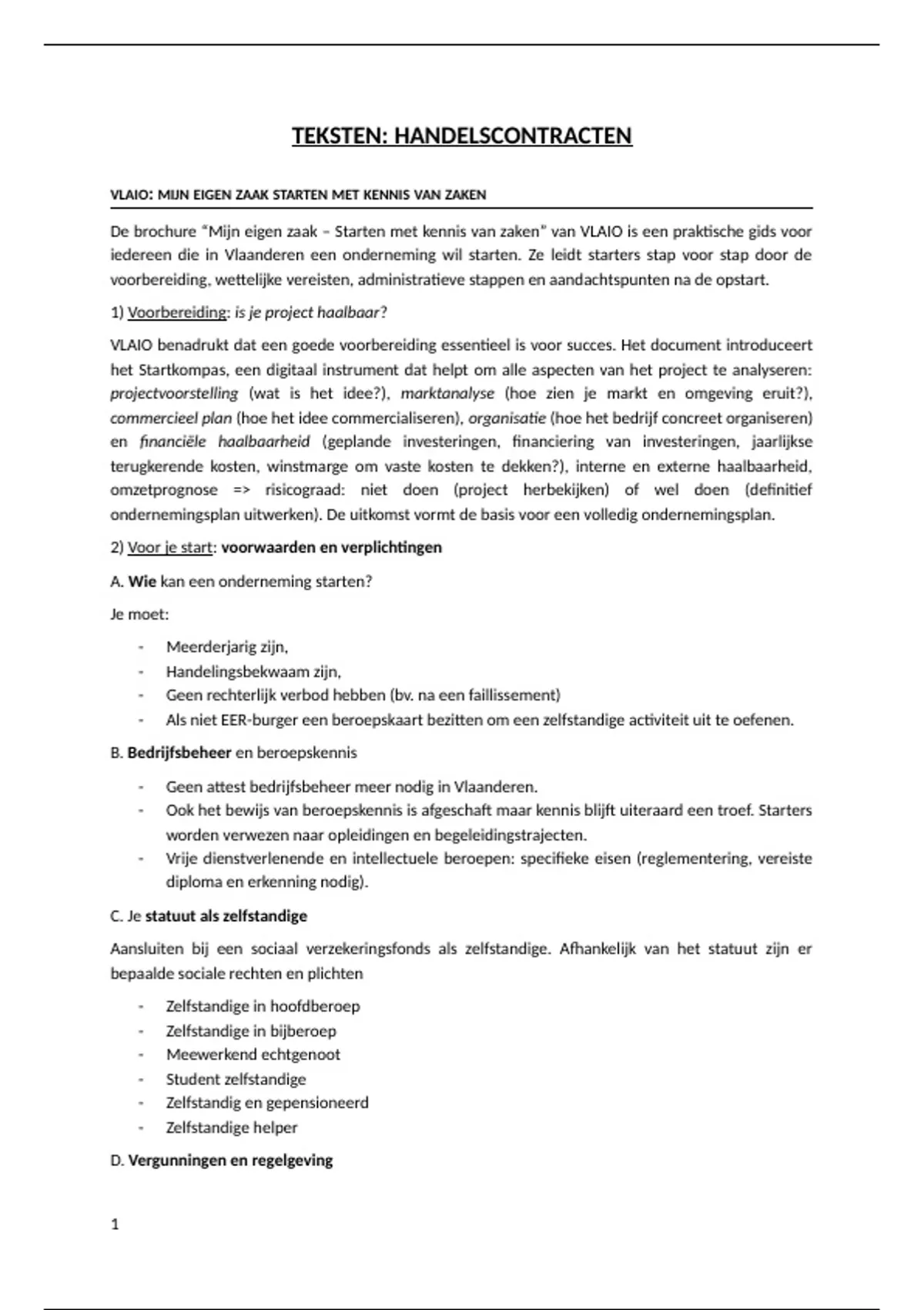 C. Je statuut als zelfstandige