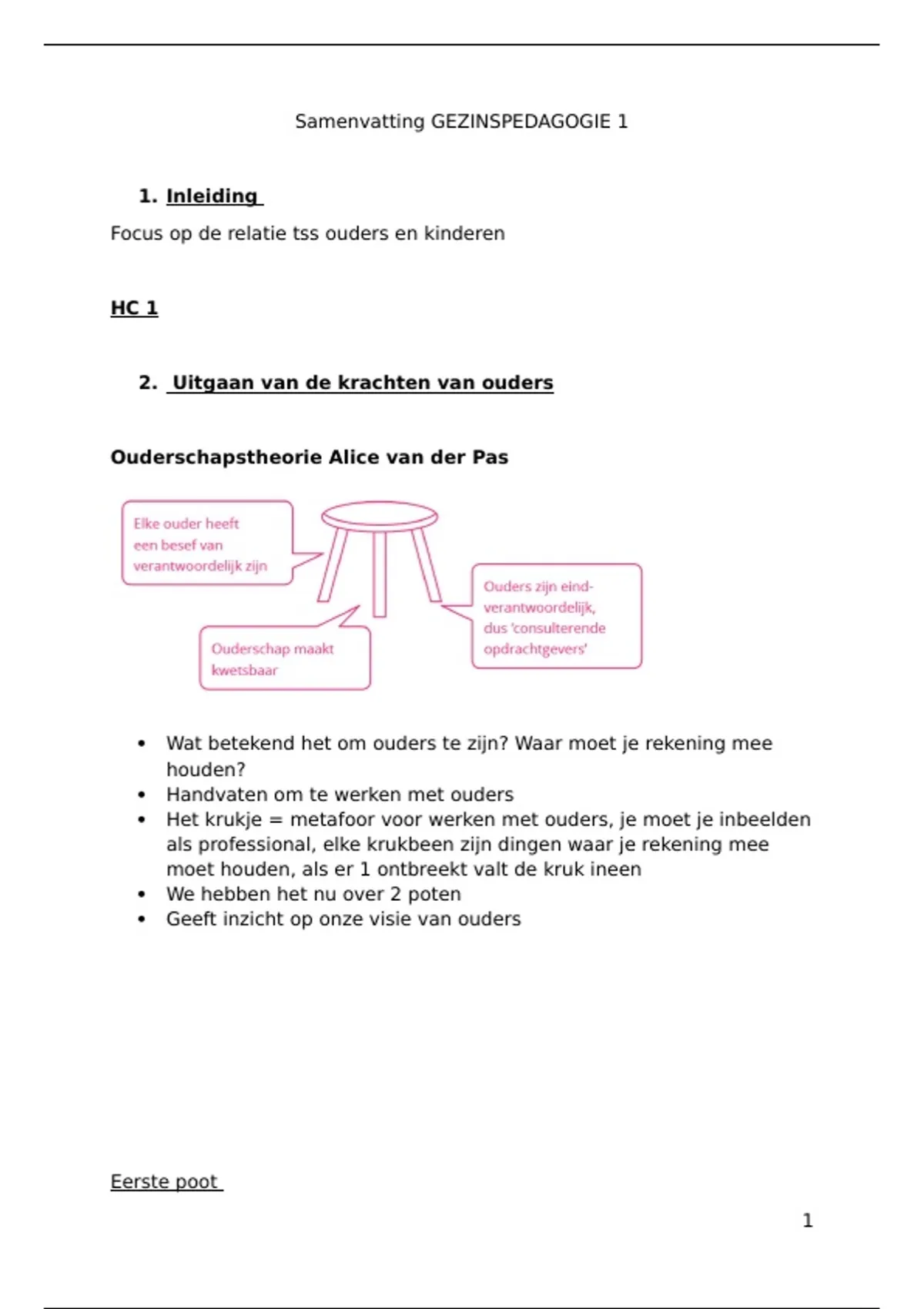  Het krukje = metafoor voor werken met ouders, je moet je inbeelden