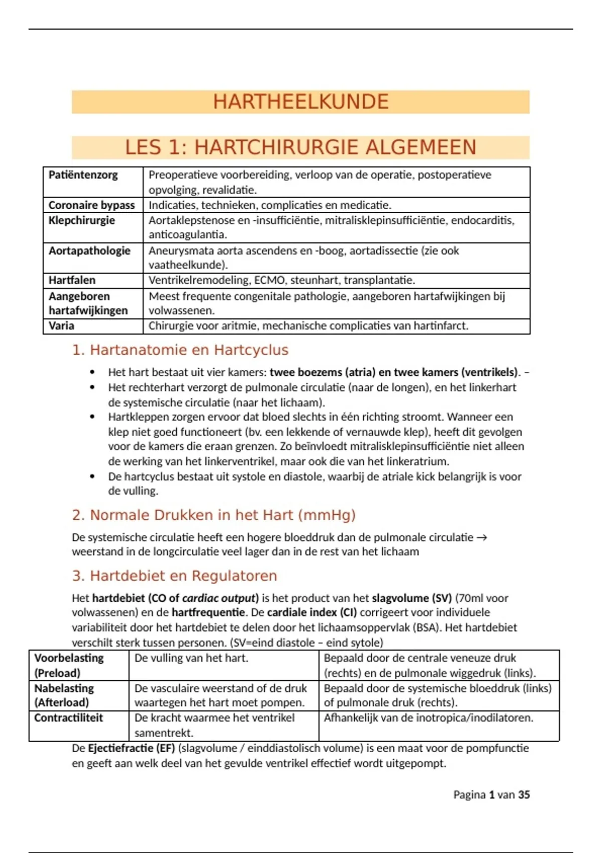 samenvatting hartheelkunde (hartchirurgie) (vak: problemen van hart en bloedvaten)