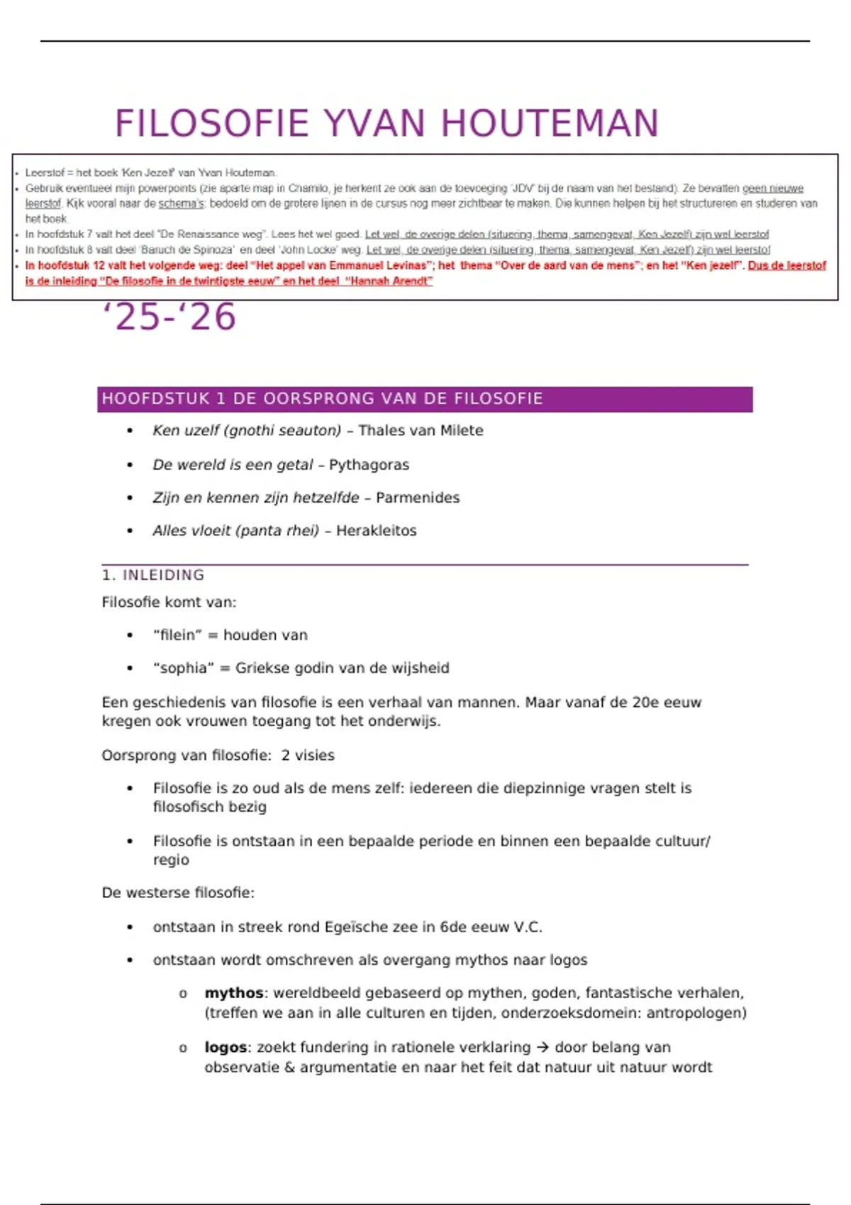 HOOFDSTUK 1 DE OORSPRONG VAN DE FILOSOFIE