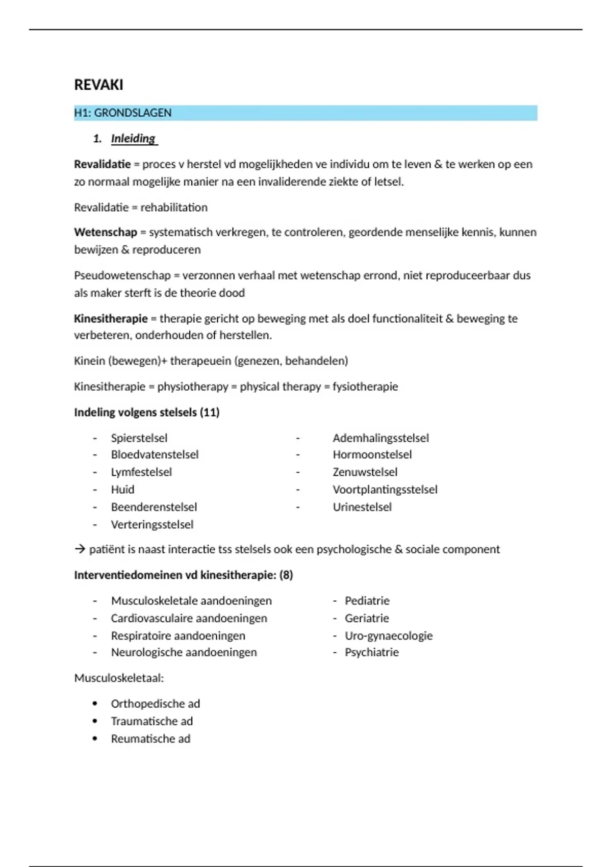 Interventiedomeinen vd kinesitherapie: (8)