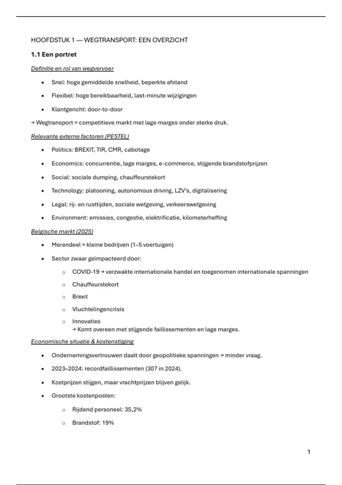 → Wegtransport = competitieve markt met lage marges onder sterke druk.