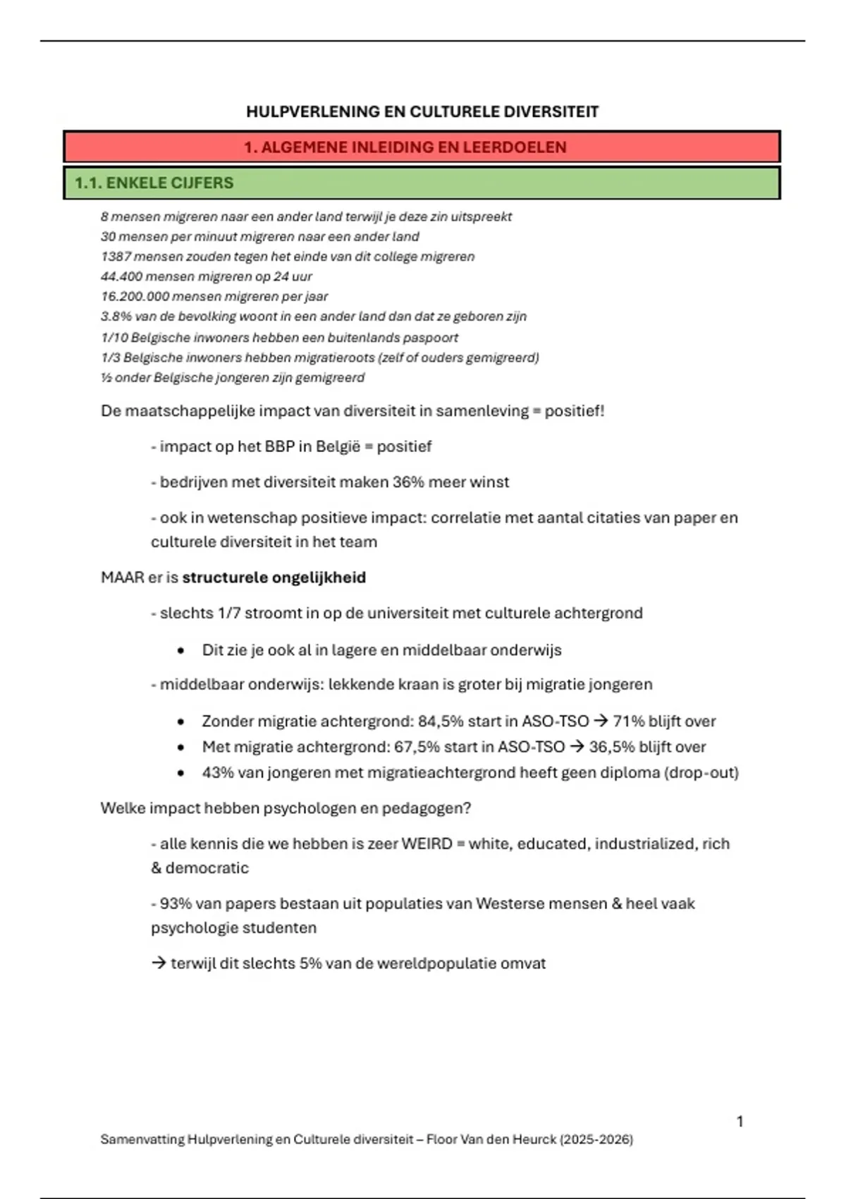 Samenvatting Hulpverlening en Culturele diversiteit – Floor Van den Heurck (2025-2026)