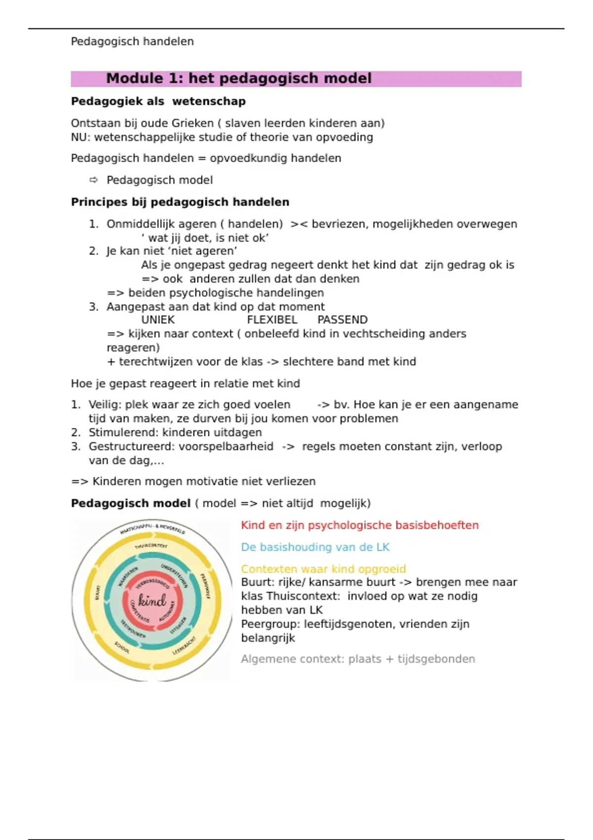 Beknopte, maar volledige samenvatting voor het vak pedagogisch handelen