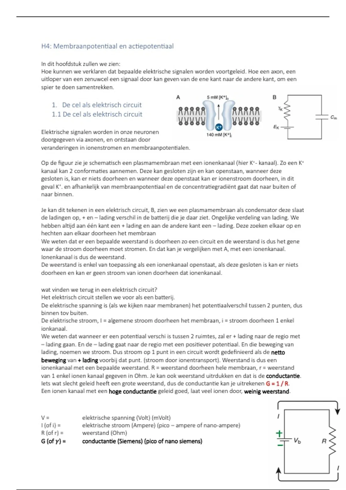 naar de hele membraan hoe K+ in of uit de cel gaat). Grote I