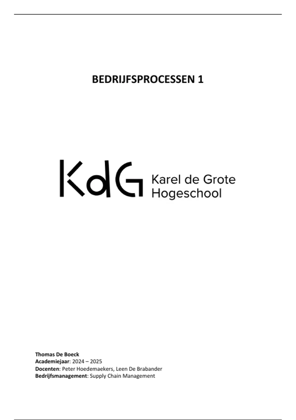 Dit is een samenvatting van het vak Bedrijfsprocessen 1 in het 2e jaar SCM. Dit vak werd gegeven door P. Hoedemaekers en L. De Brabander. Voor dit vak haalde ik een 17/20. Deze samenvatting bevat alle theorie van BPMN, Bedrijfsprocessen en Kwaliteitsmanagement. Geen SAP oefeningen.