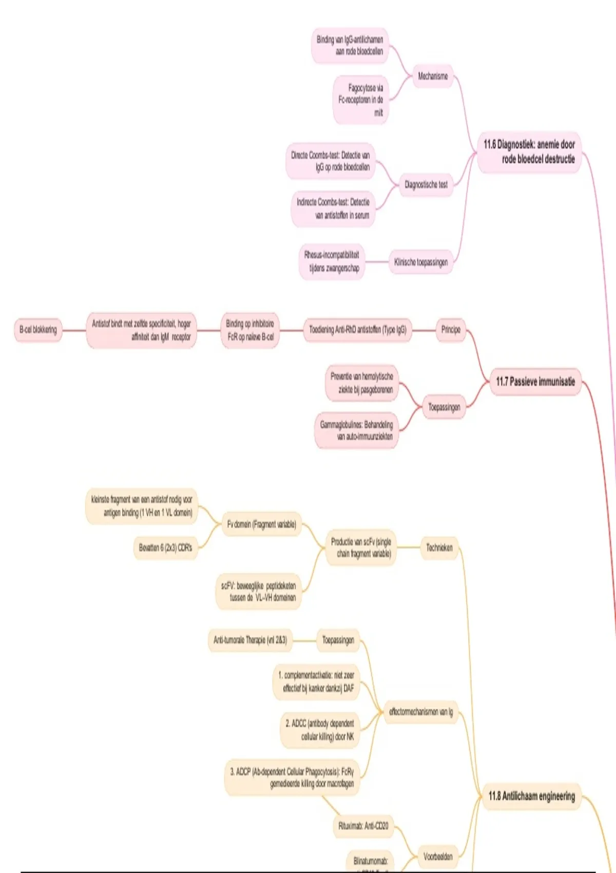Mindmap over hoofdstuk 11 antilichamen en T-celreceptoren van het vak infectie en afweer