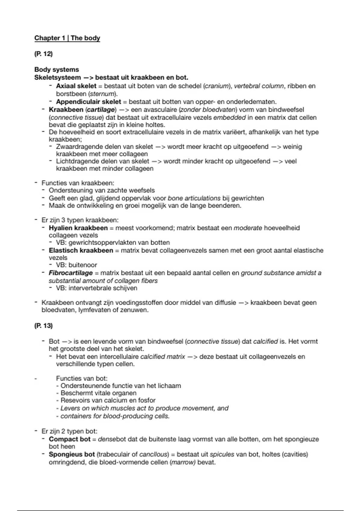 Samenvatting Grays Anatomy | Chapter 1 | p. 12 en 13 (proefversie)