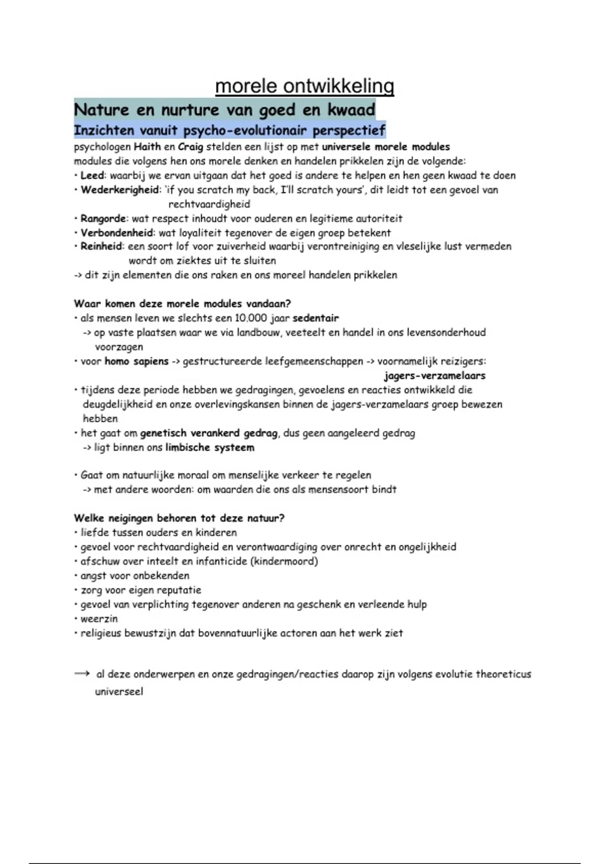 • waarden/ normen spelen belangrijke rol in morele ontwikkeling