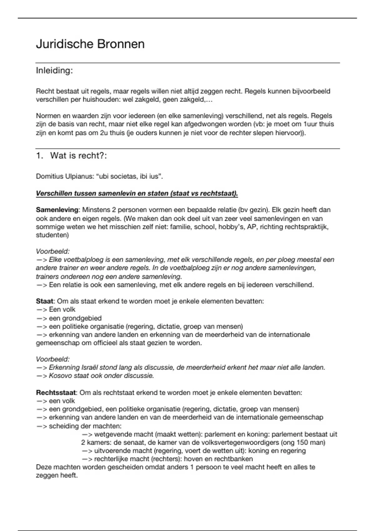 Duidelijke samenvatting van het vak juridische bronnen, gegeven door Christophe Baekeland. Een 13/20 gehaald met deze samenvatting.