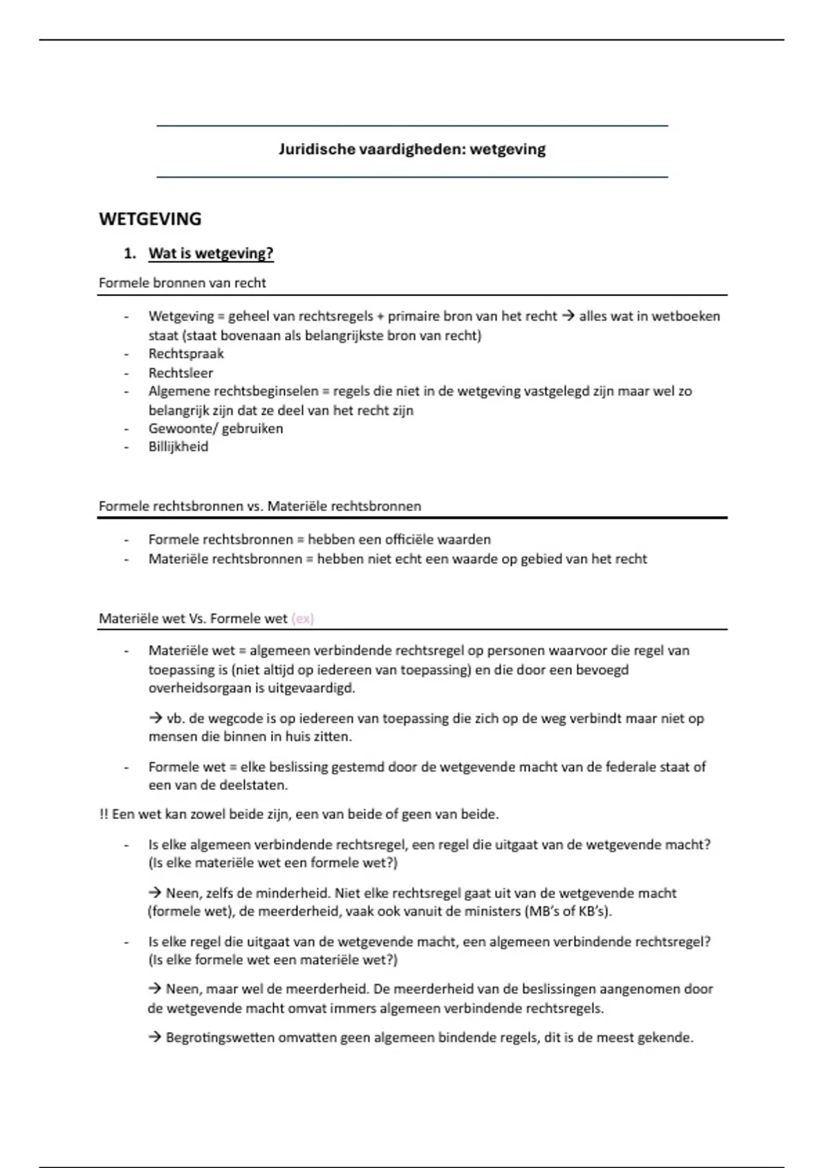 - Wetgeving = geheel van rechtsregels + primaire bron van het recht à alles wat in wetboeken