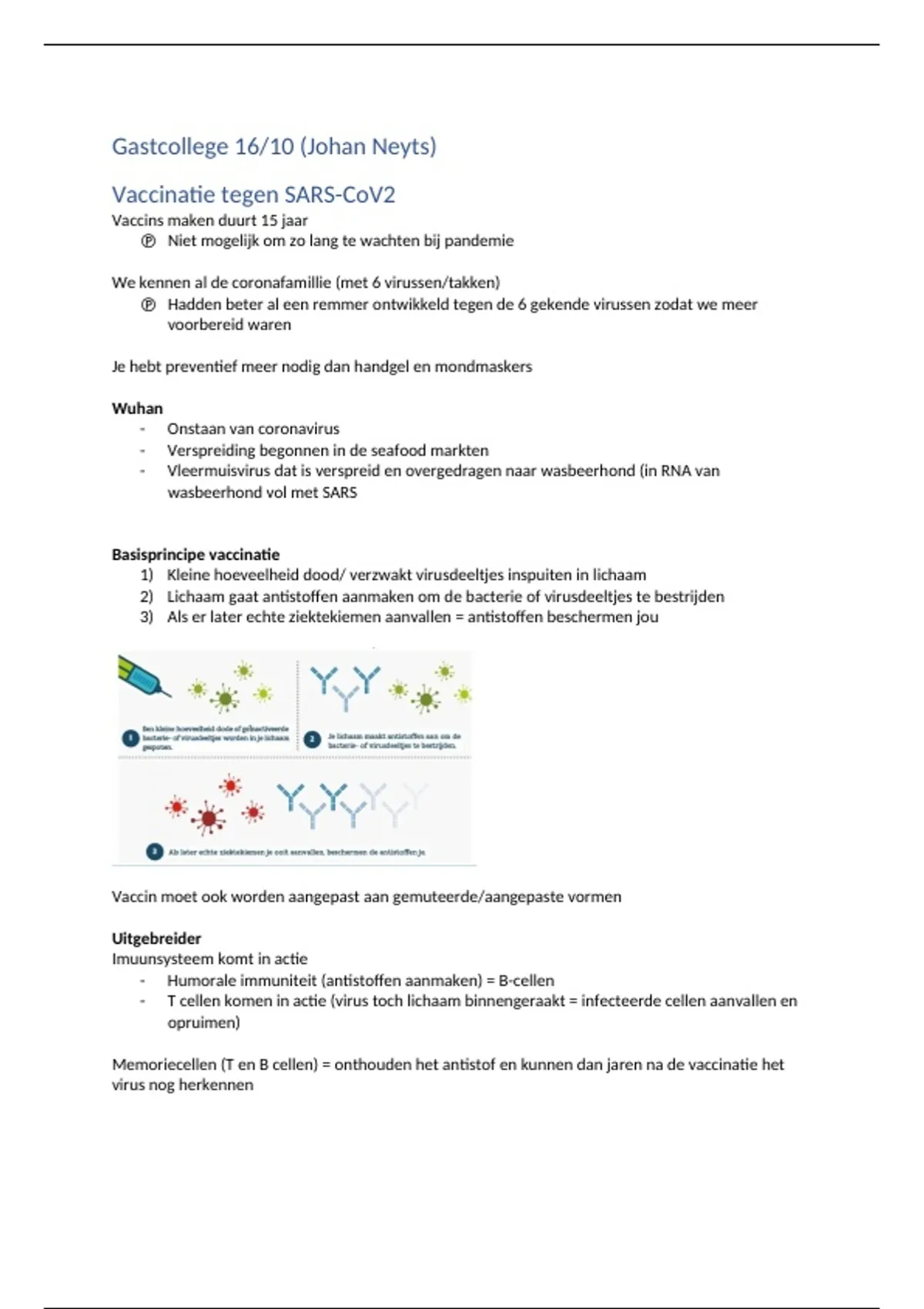 Memoriecellen (T en B cellen) = onthouden het antistof en kunnen dan jaren na de vaccinatie het