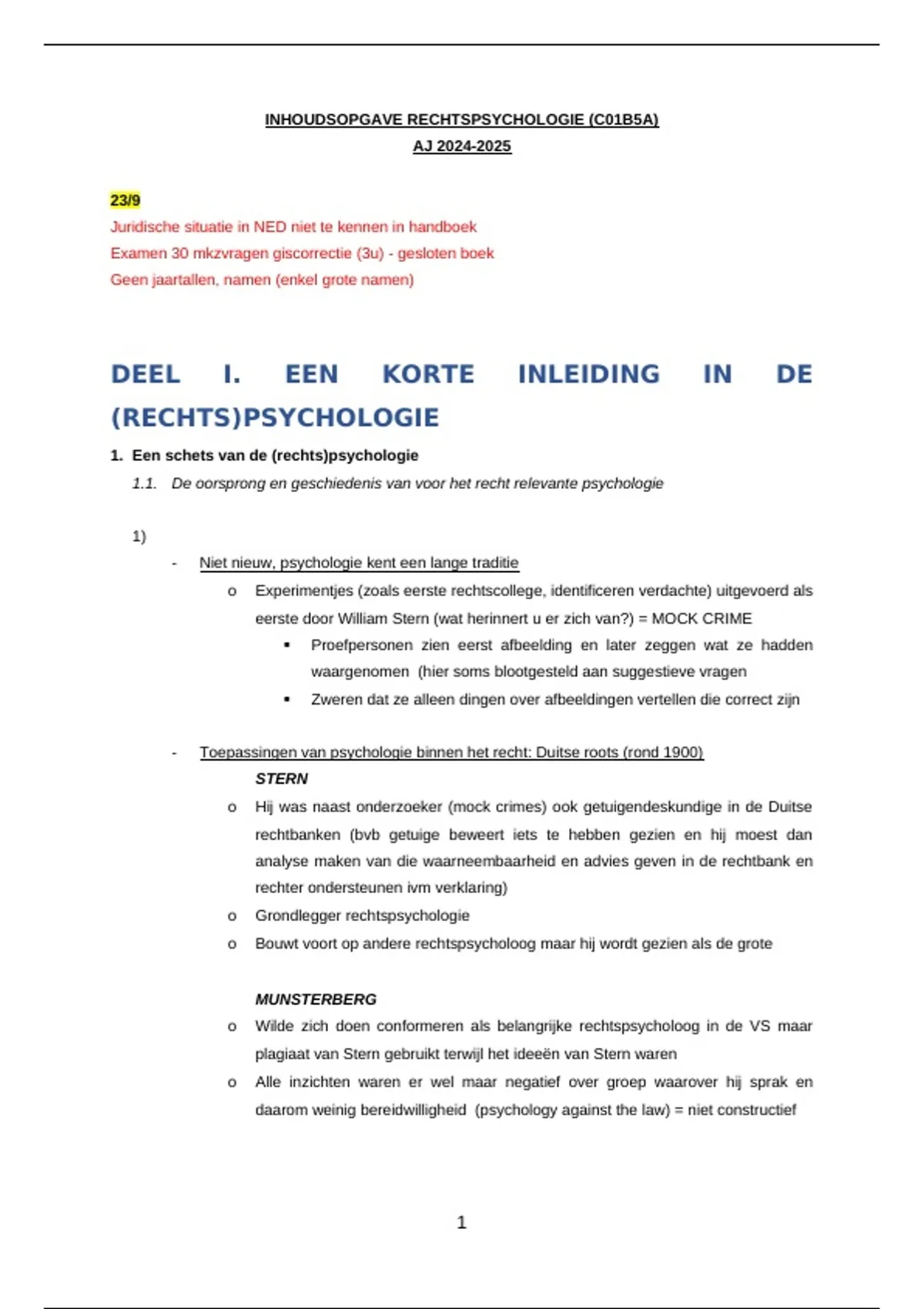 INHOUDSOPGAVE RECHTSPSYCHOLOGIE (C01B5A)