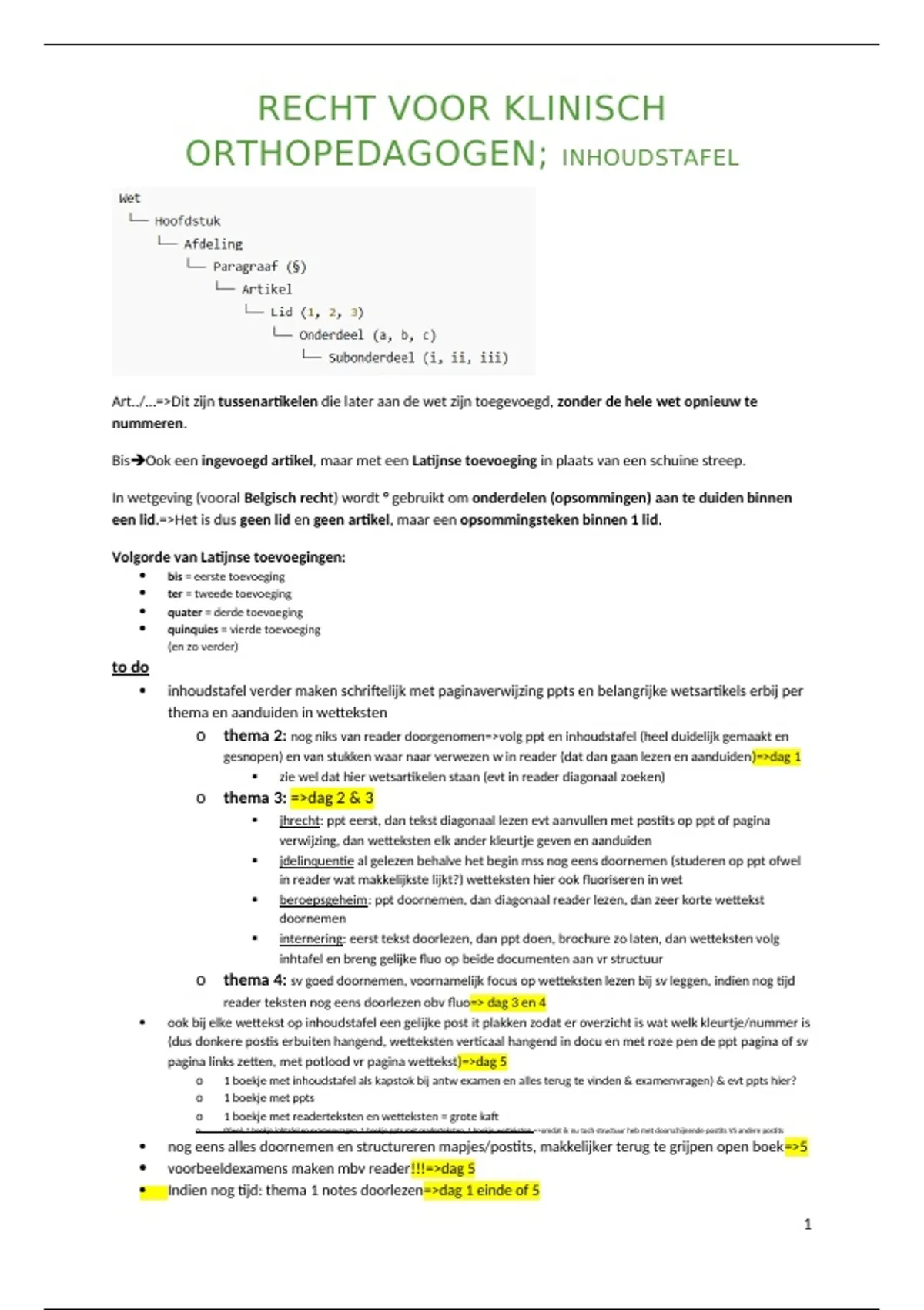 inhoudstafel verder maken schriftelijk met paginaverwijzing ppts en belangrijke wetsartikels erbij per