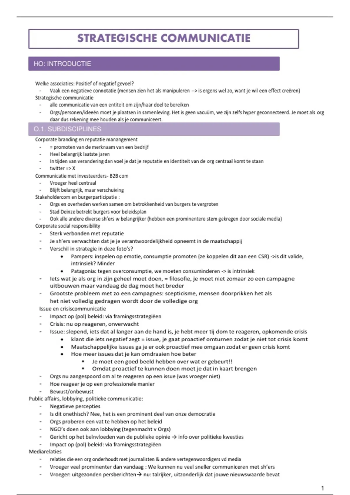 H1: DEFINIERING VAN STRATEGISCHE COMMUNICATIE