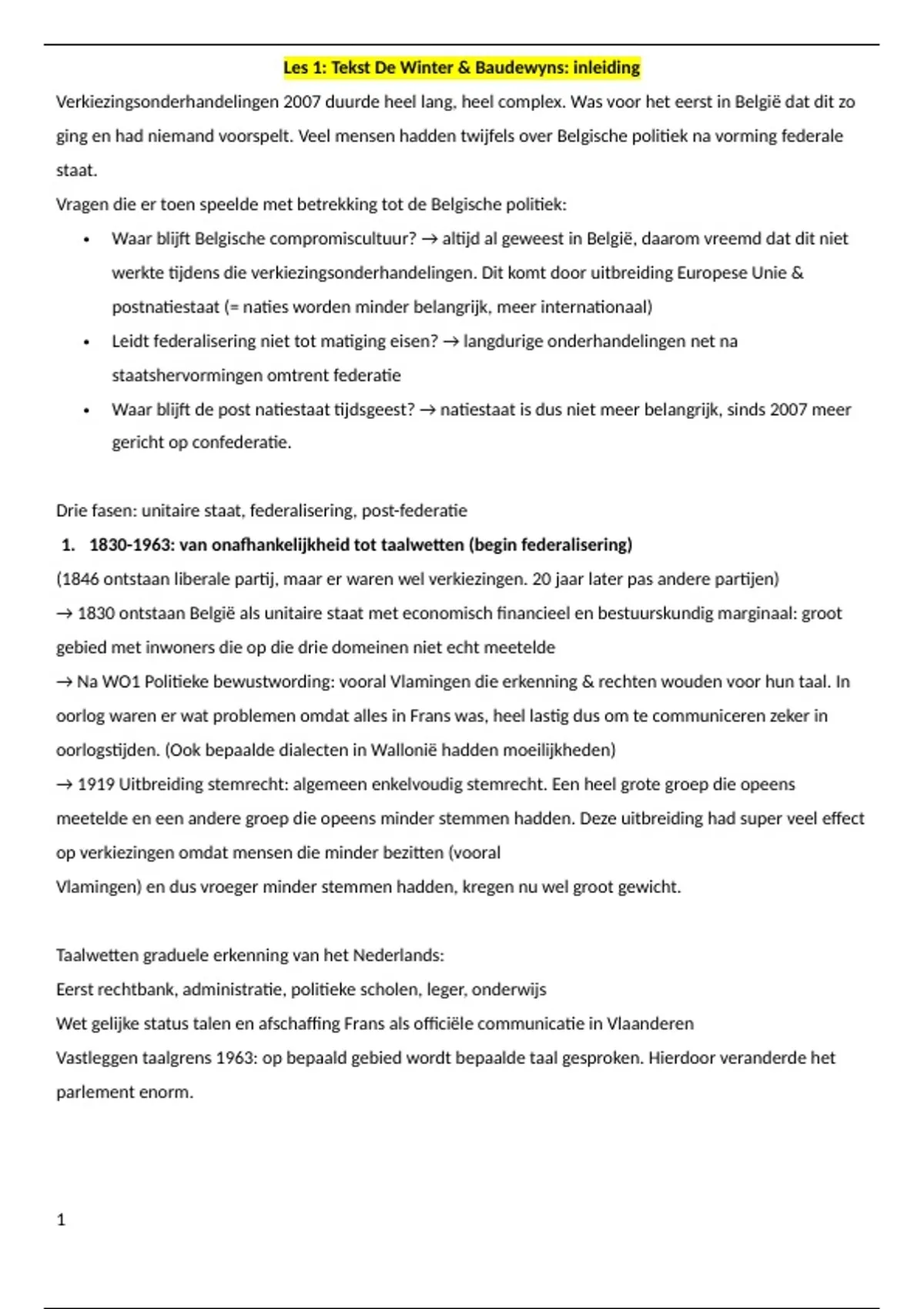 Les 1: Tekst De Winter & Baudewyns: inleiding