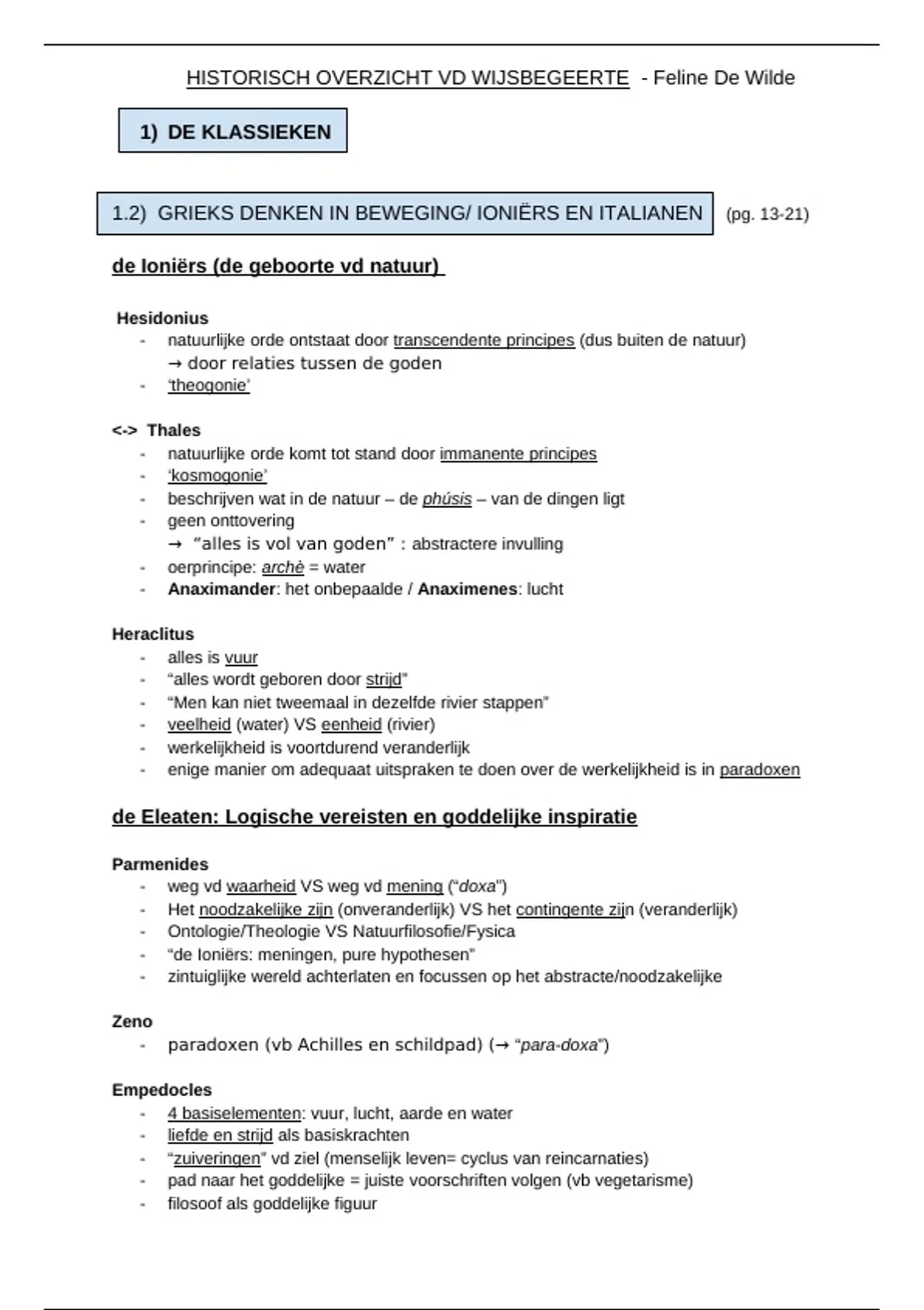 1.2) GRIEKS DENKEN IN BEWEGING/ IONIËRS EN ITALIANEN (pg. 13-21)