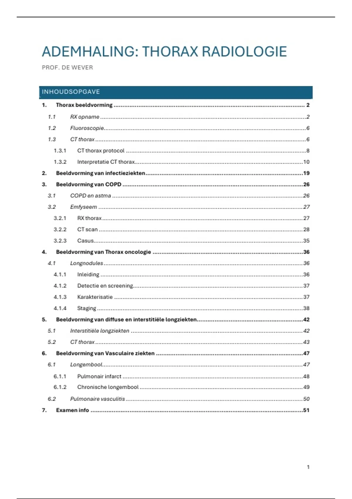 Samenvatting thoraxradiologie - Prof. Dr. Walter De Wever