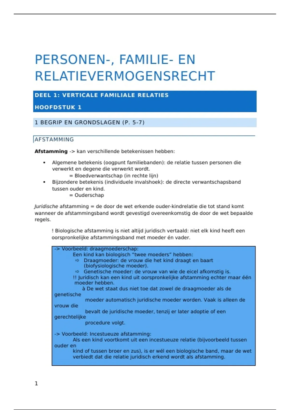 DEEL 1: VERTICALE FAMILIALE RELATIES