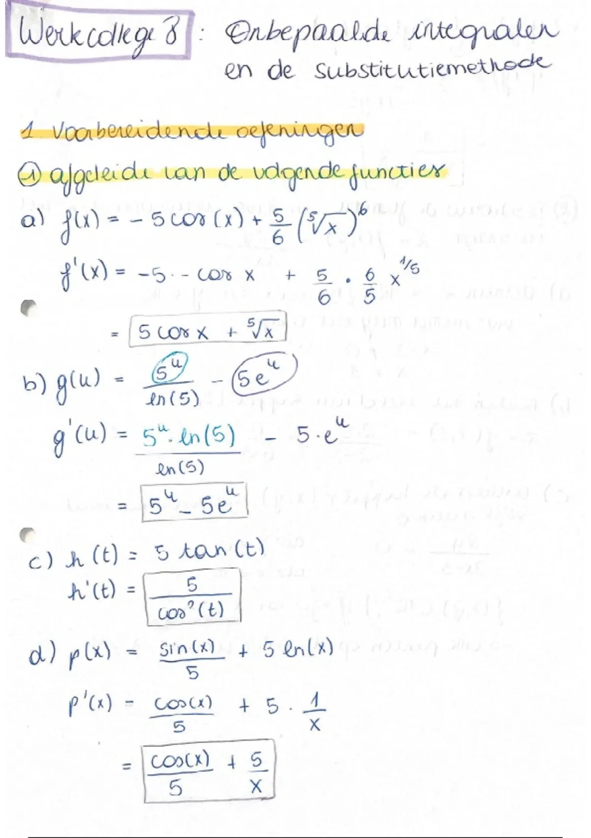 Samenvatting Uitwerkingen ALLE opgaven en extra opgaven van de werkcolleges 8, 9 en 10 (INTEGRALEN)