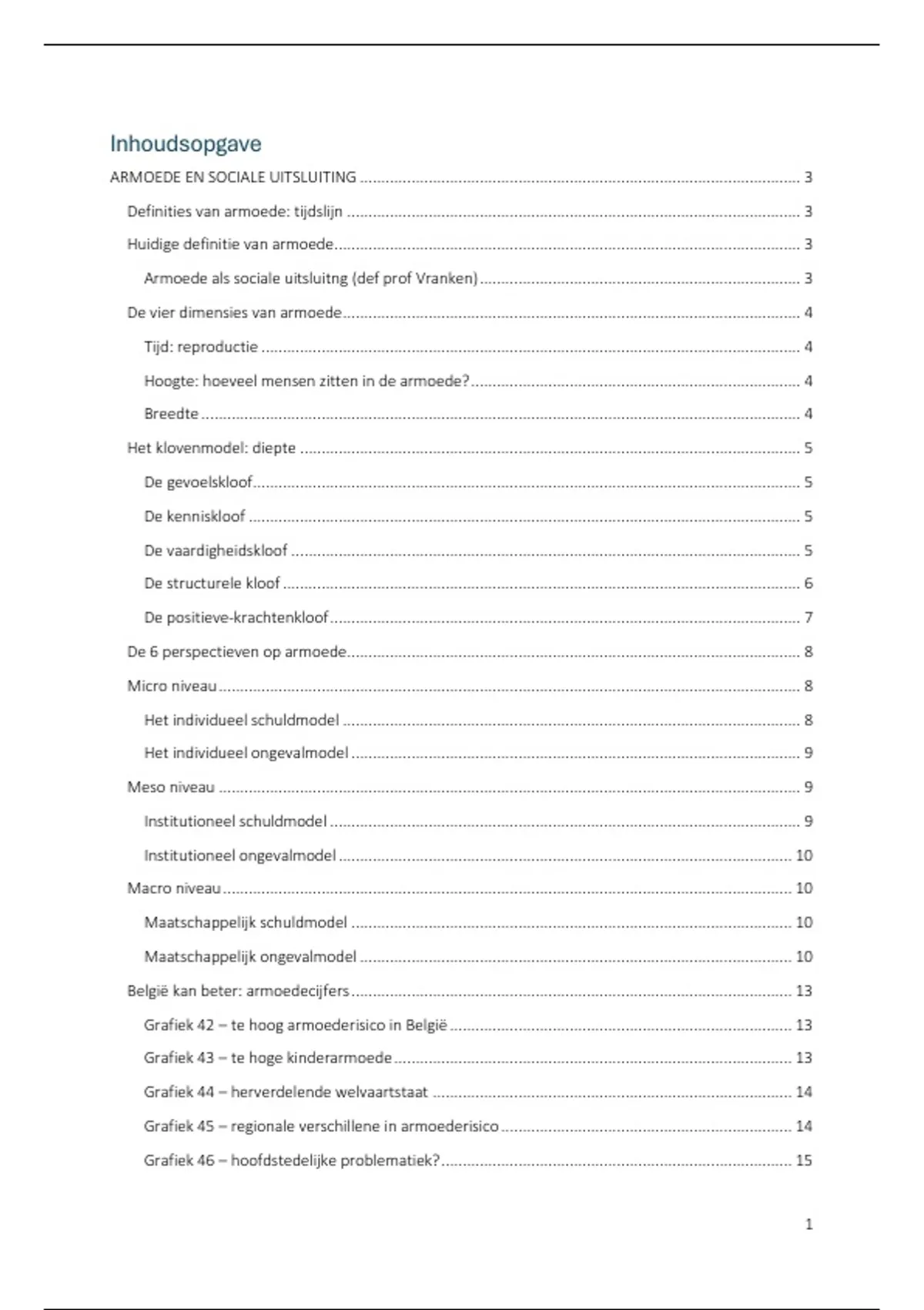 Samenvatting Armoede & Sociale Uitsluiting (Vranken, De Bie, modellen & grafieken)